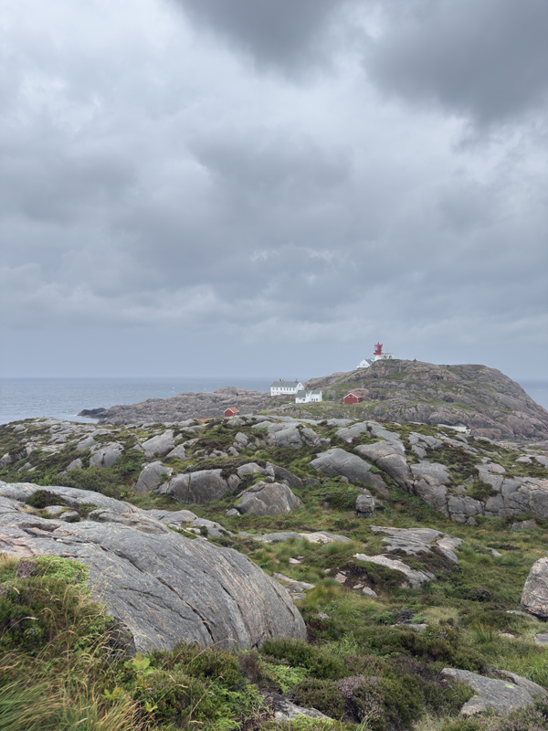 The trail was rocky, wet, and muddy. In shorts and flip-flops, I tried to dodge sticks and sharp grass, but it was a losing battle. Rain and wind whipped at my face, the open sea roaring ahead. To the east lay Skagerrak, to the west the wilder North Sea and Atlantic swells. These dangerous waters were the reason Lindesnes became Norway’s first lighthouse site in the first place. For me today, the real danger was the slick, slippery cliffs.