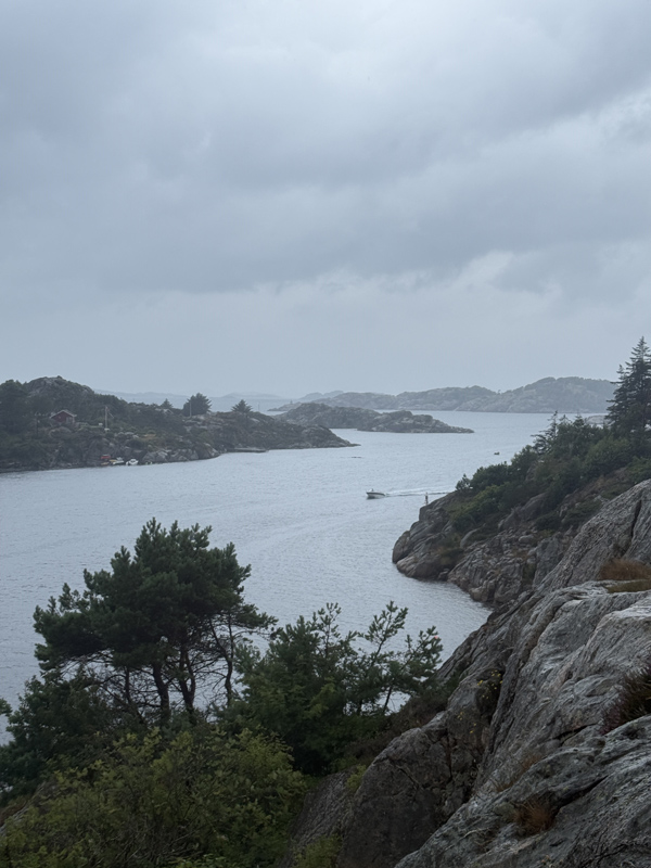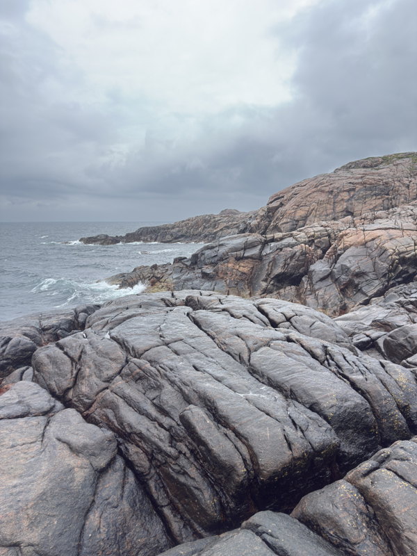 The rain never stopped. I drove an hour through storm-soaked roads, feeling sorry for motorcyclists battling the weather. Parking near Odden was the hardest part: most of the archipelago is private, and I had to leave my car several hundred meters away. My clothes had partly dried, only to get drenched again on the short walk.